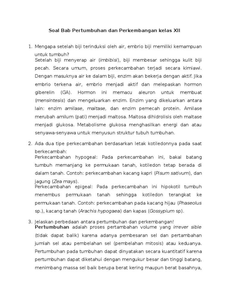 Bab pertumbuhan dan perkembangan makhluk hidup. Pertumbuhan adalah proses kenaikan volume dan substansi kimia sel yang tidak bisa kembali keasal atau irreversible karena . Download jawaban soal pilihan ganda bab pertumbuhan tumbuhan Pertumbuhan lebih bersifat kuantitatif, dimana suatu organisme yang dulunya kecil menjadi lebih besar seiring dengan pertambahan waktu. Soal dikerjakan pada selembar kertas.